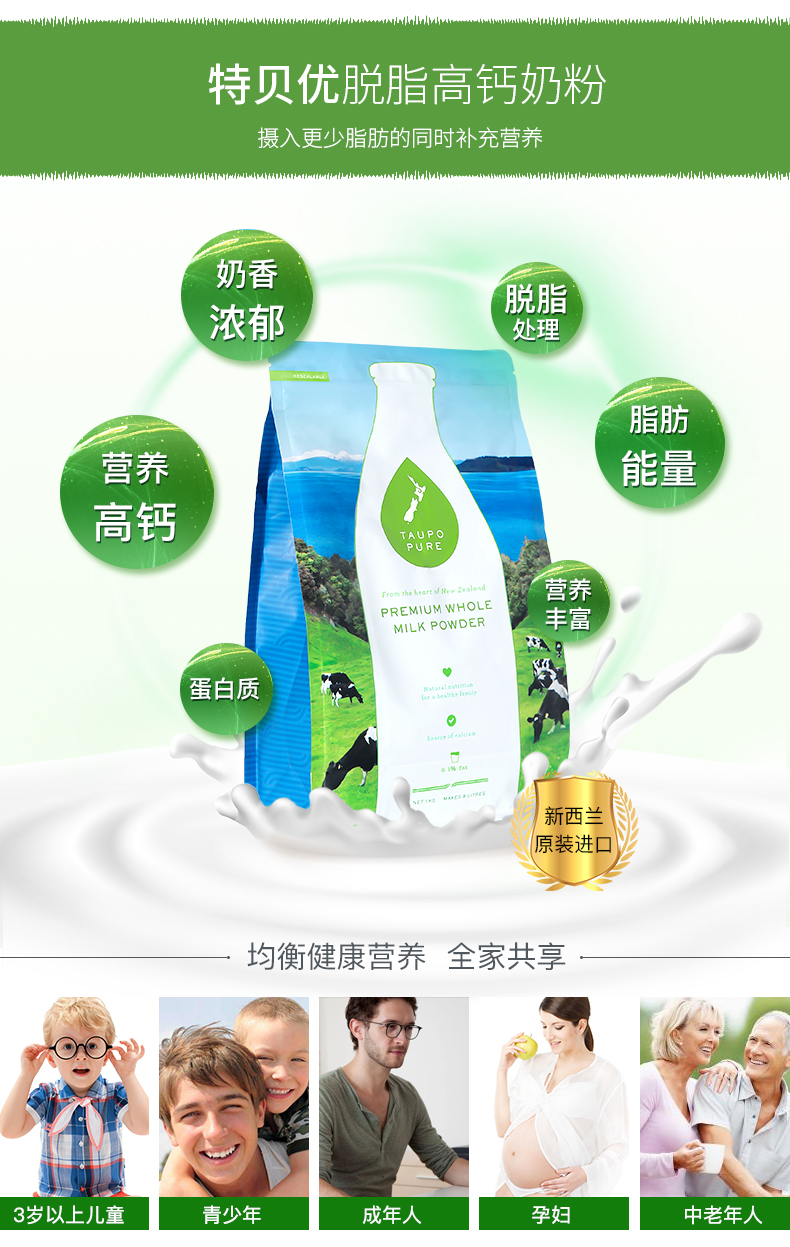 产品名称 : | 【6袋包邮】Taupo pure 陶波 特贝优 脱脂奶粉 1kg |
