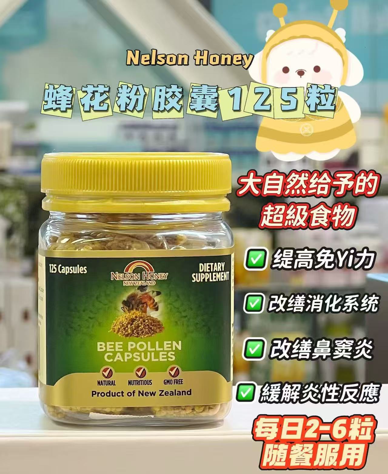 产品名称 : | Nelson Honey 蜂花粉胶囊 125粒 |