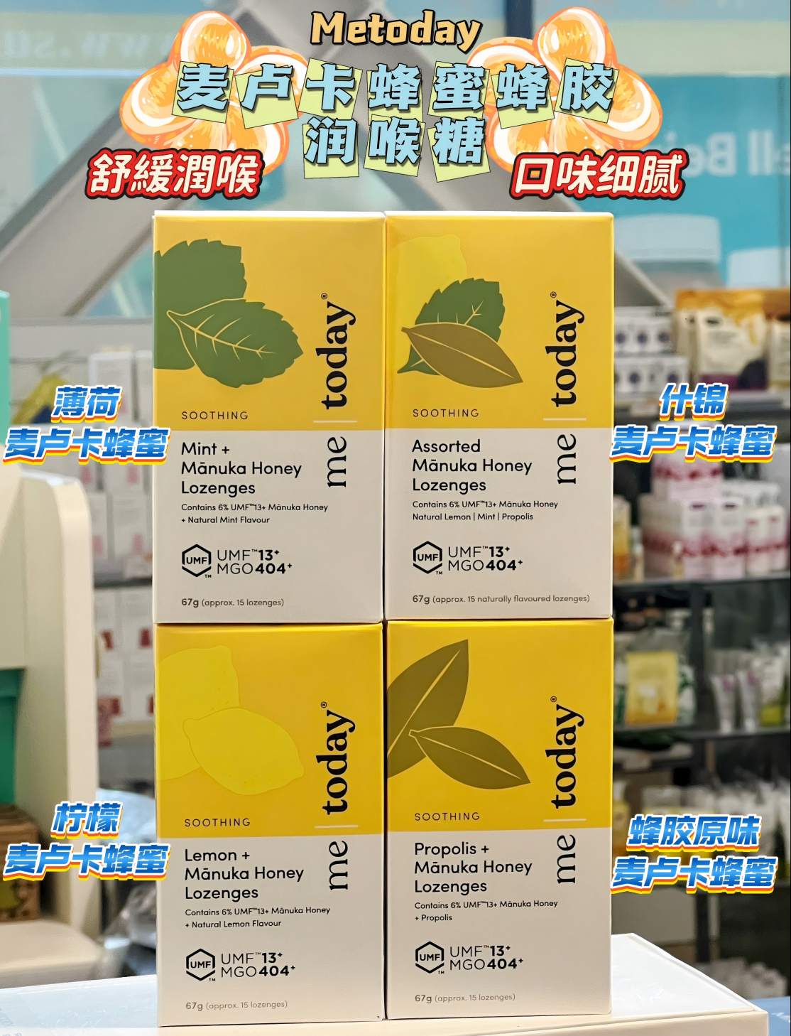 产品名称 : | 【下单备注味道】metoday 麦卢卡蜂蜜润喉糖 蜂胶糖 15粒(薄荷/柠檬/蜂胶/什锦) |