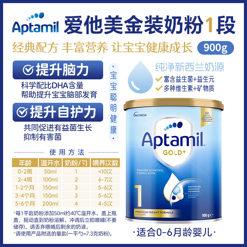 产品名称 : | 【包邮顺丰快线7-10天收】Aptamil爱他美金装牛奶粉1段一段900g(0-6个月) 【一箱6罐包邮包税】 |