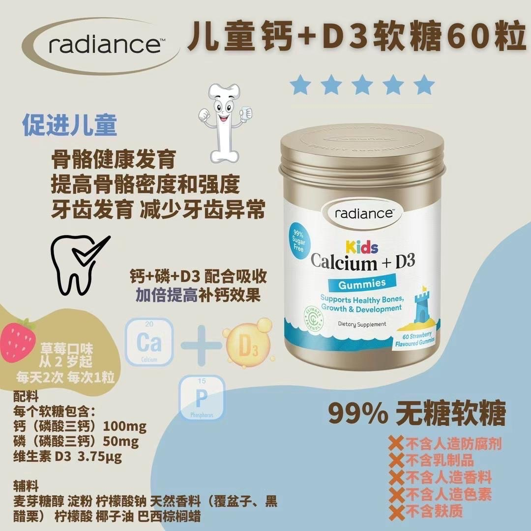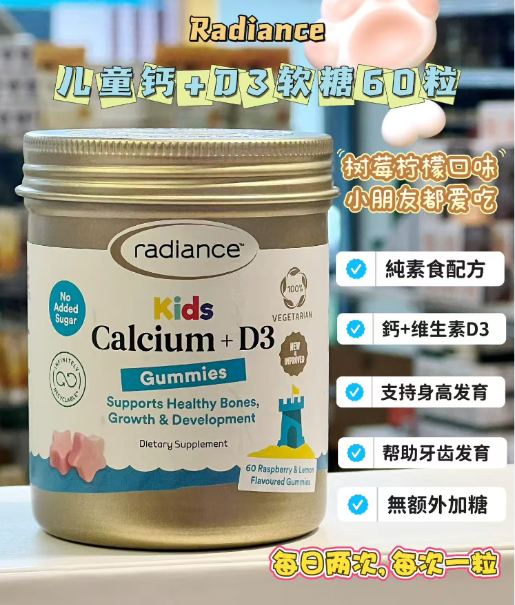 产品名称 : | 新西兰Radiance 儿童钙+维生素D3软糖60粒 |