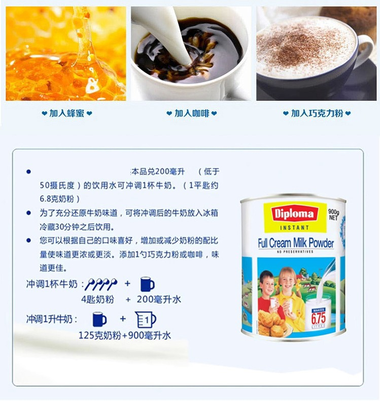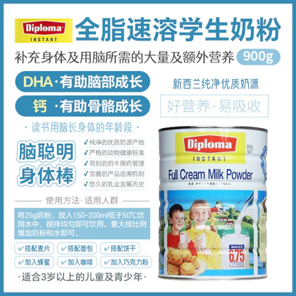 产品名称 : | 新西兰Diploma 学生奶青少年儿童高钙牛奶粉罐装900G |