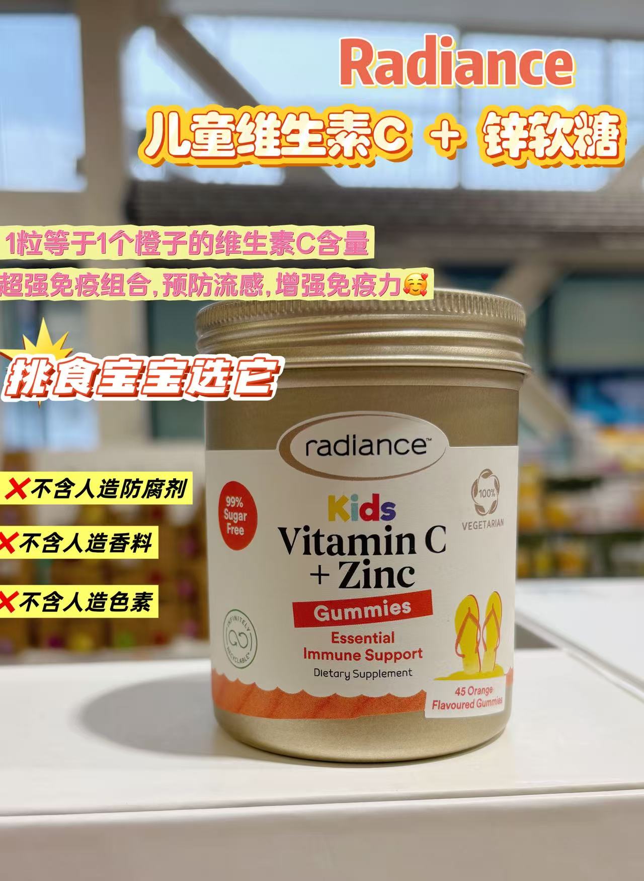 产品名称 : | Radiance 儿童维生素C+锌 维C软糖 45粒 |