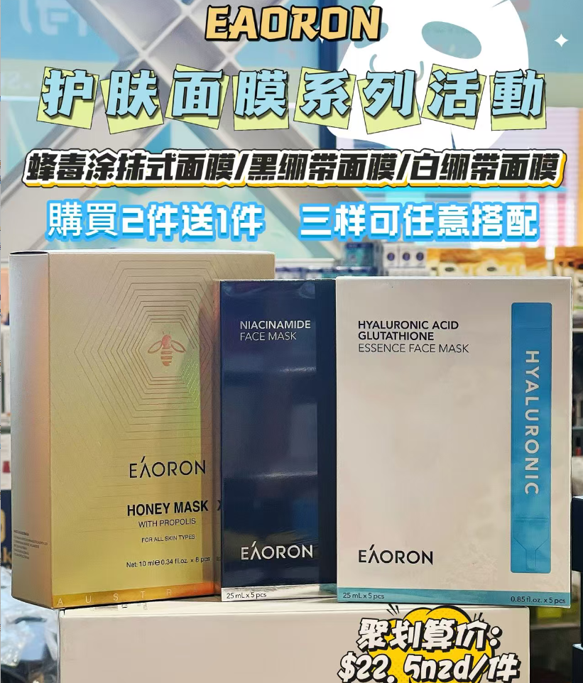 产品名称 : | 【任意买2送1】eaoron 面膜任性 蜂毒面膜 黑钻美白面膜 白色补水面膜 |