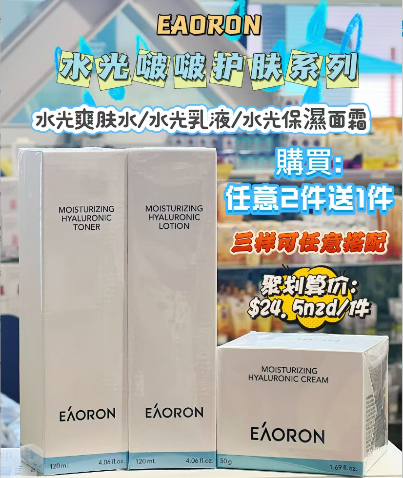 产品名称 : | 【任意买2送1】eaoron 水光爽肤水 乳液 保湿面霜 任选 |