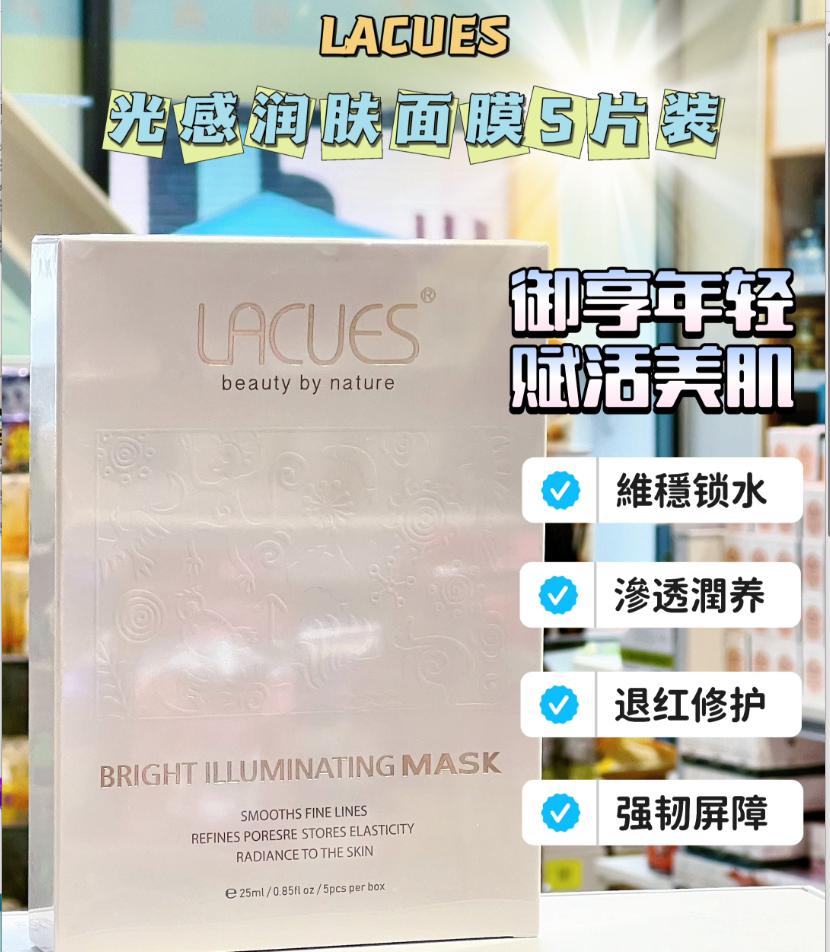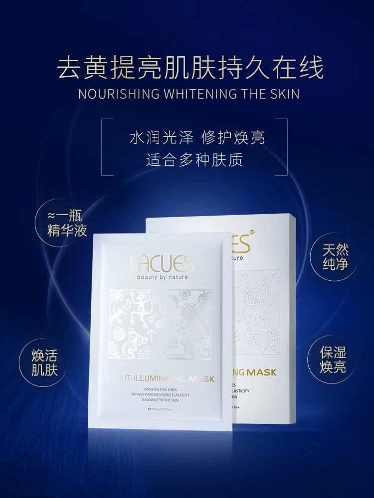 产品名称 : | LACUES露可莳 光感水光亮白美白紧致面膜5片/盒 |