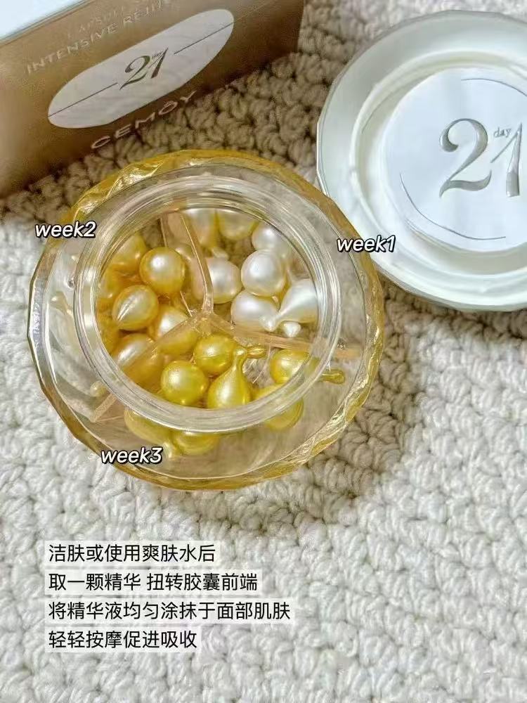 产品名称 : | Cemoy 21天密集抗皱紧致胶囊精华液42粒*0.4g |