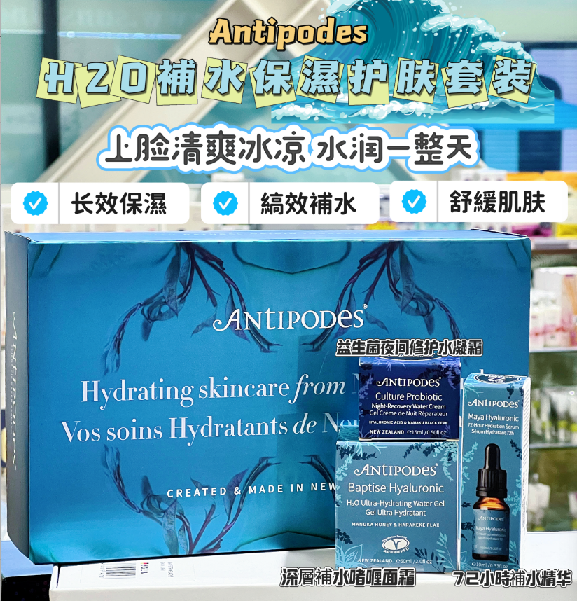 产品名称 : | Antipodes 补水保湿套装(面霜+精华+益生菌晚霜) |