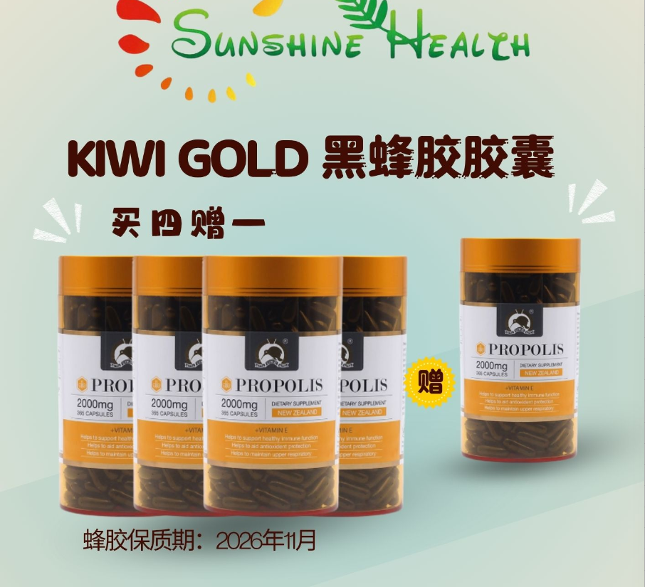 | 产品名称 : | 【买四送一链接】Kiwigold金奇维 黑蜂胶胶囊 2000mg 365粒*5 |