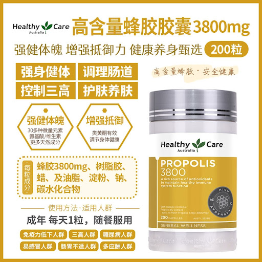 | 产品名称 : | Healthy Care 高含量蜂胶3800mg 200粒 |