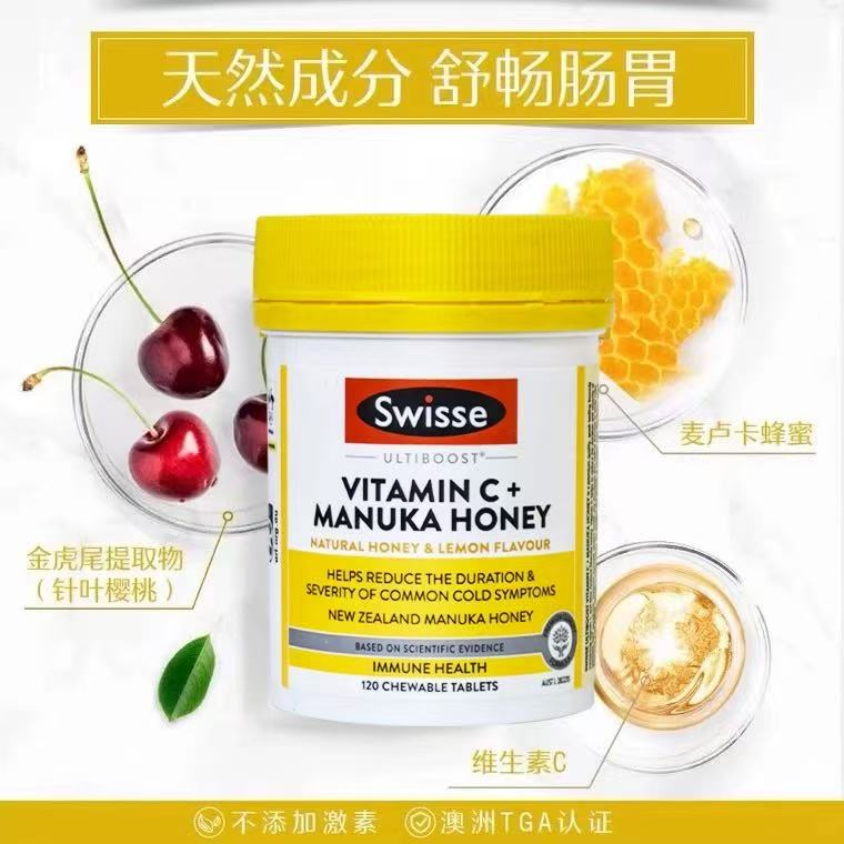 | 产品名称 : | Swisse VC + 麦卢卡蜂蜜咀嚼片120片 |