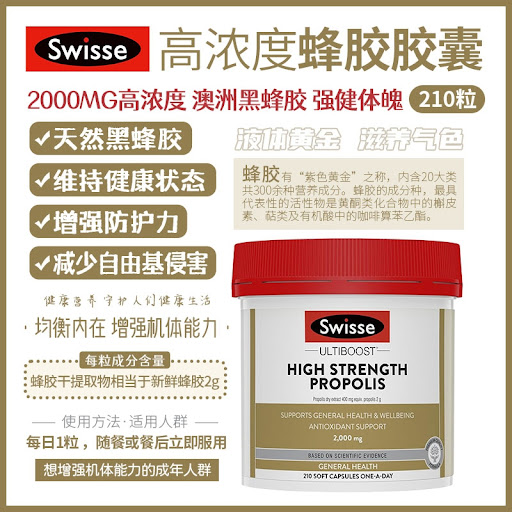| 产品名称 : | Swisse 高浓度蜂胶软胶囊2000mg 210粒 |